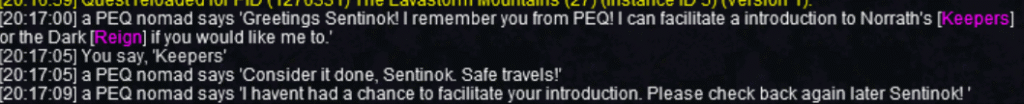 We are still working on getting DoN working correctly and found some issues with the ‘delveb’ zone spawning task-specific spawns in open world. We will be looking into that today. Also, we disabled a server piece of code that would reset factions inappropriately if you were indifferent or higher in multiple factions which were undoing the faction updates. Please use /bugreport to identify these issues so we can get them resolved as quickly as possible.